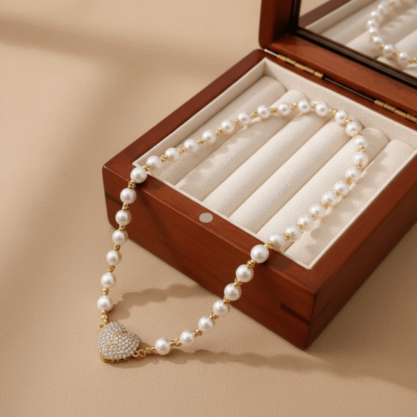 Pour un look harmonieux, nous conseillons d’associer ce pendentif cœur avec des boucles d’oreilles minimalistes en perles 💖